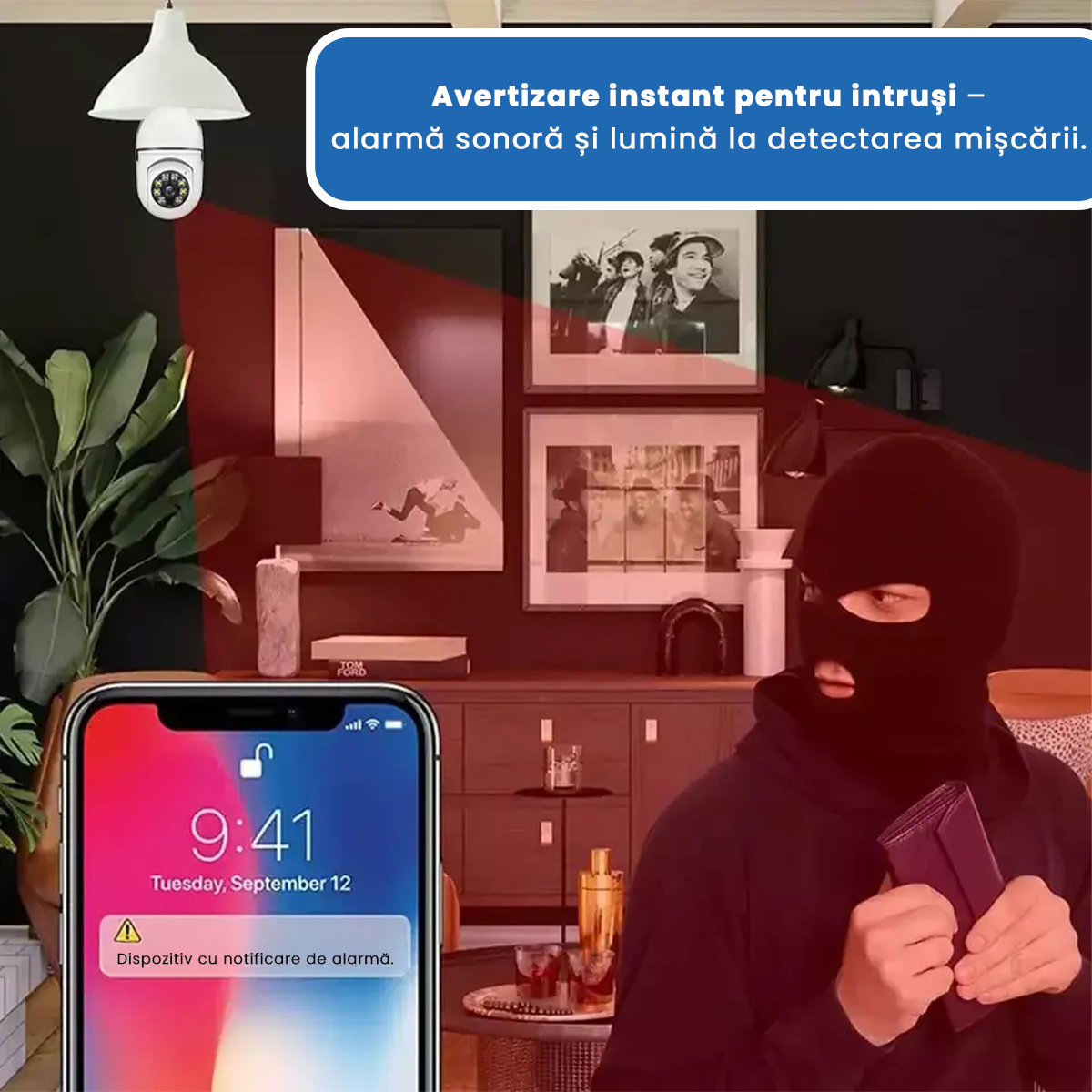 Detectează automat mișcările și trimite alerte pe telefon