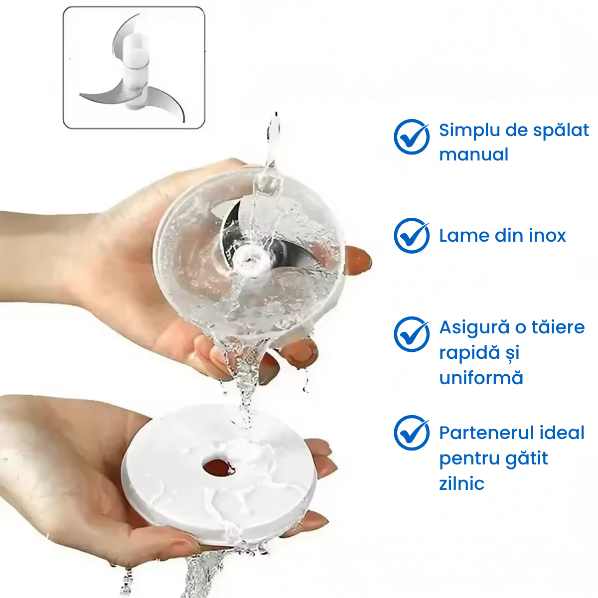 Asigură o tăiere rapidă și uniformă pentru legume, fructe, carne sau ierburi